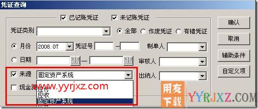 (1)依次点击“总账”-“凭证”-“查询凭证”,勾选“来源”,选择单据来源: