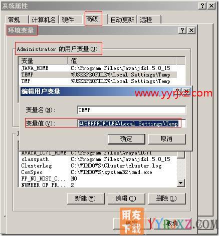 (2)还有可能是临时文件夹中某些临时文件被锁定了。右键“我的电脑”—“属性”—“高级”页签,点击“环境变量”,将“Adminstrator的用户变量”中的TEMP和TMP的“变量值”修改为另一个英文名称的文件夹路径,并在该路径下建立此文件夹。更多环境变量修改的教程,请操作:https://m.yyrjxz.com/xue/xghjbl.html 。