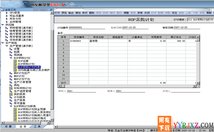 · 用友U6中小企业管理软件V3.1普及型ERP去掉了工艺路线上的生效日期和失效日期。